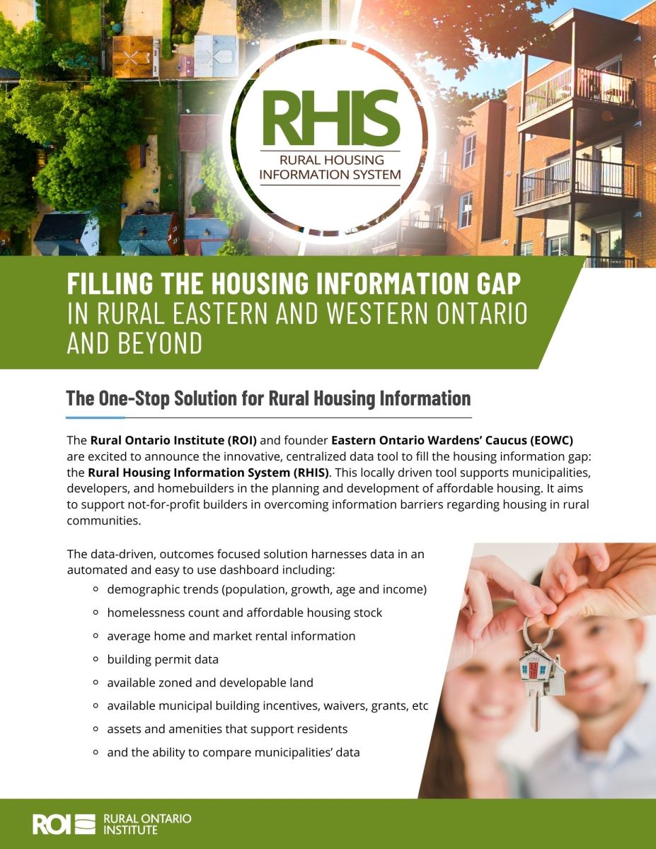 Rural Housing Information System (RHIS) is a locally driven tool supporting municipalities, developers, and homebuilders in the planning and development of affordable housing. It aims to support not-for-profit builders in overcoming information barriers regarding housing in rural communities.